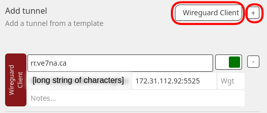 Wireguard Client connection details for VA7FI-hAPac3-1 Remote server name: rr.ve7na.ca Wireguard key: [a long string of characters] Network:Port: 172.31.112.92:5525